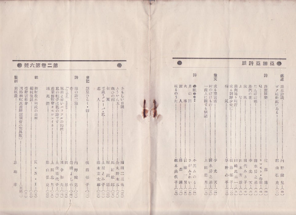 第二巻第六號昭和2年8月1日 亞細亞詩脈協會発行(京城) 定価20銭 菊判 32頁 編輯兼発行人:内野健兒 装幀:恩地孝四郎