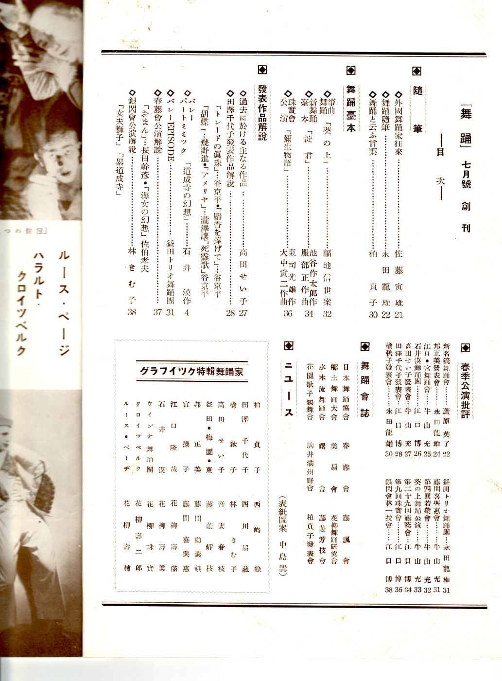 昭和9年7月1日 舞踊研究社発行 定価60銭 菊判 40頁 仮綴装 編輯人:森治市朗 発行人:小林清三 装幀:中島巽