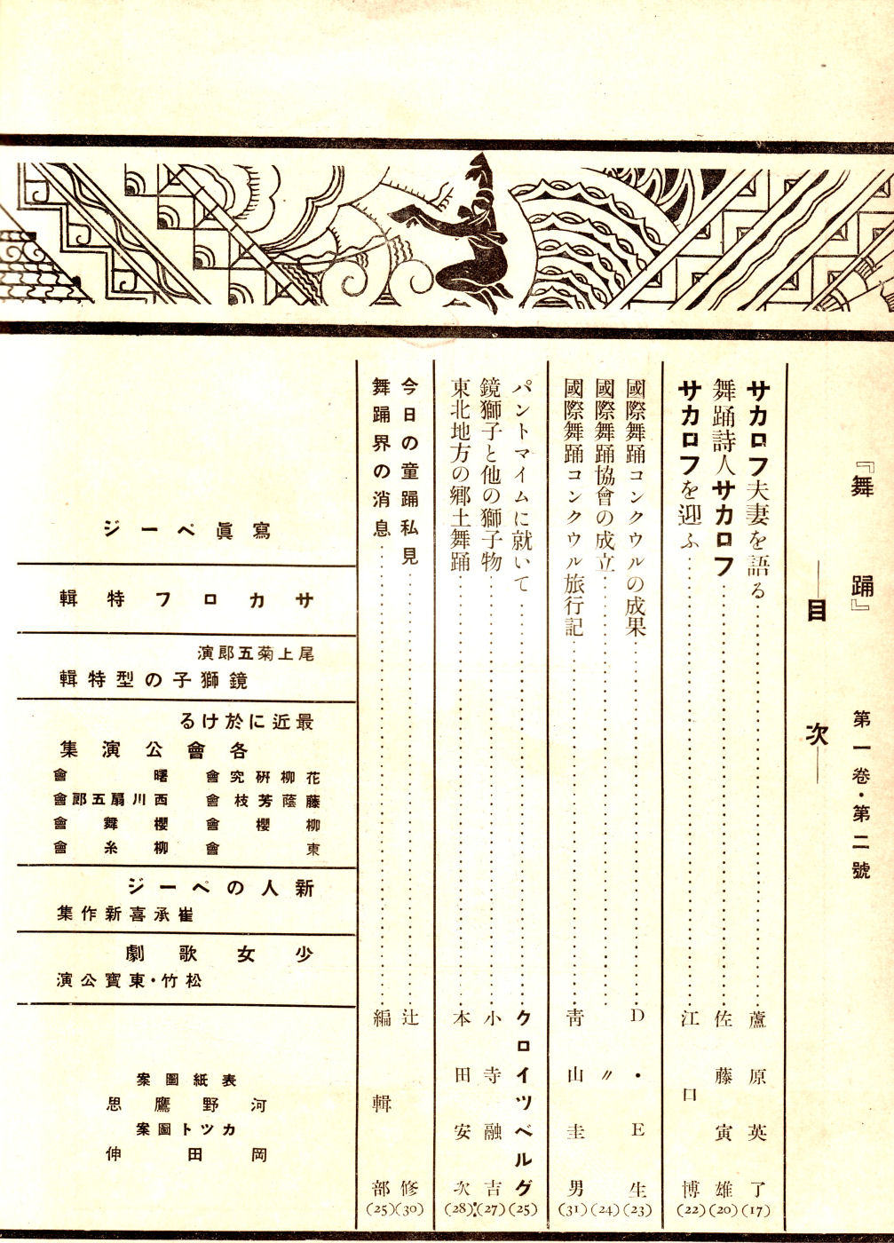昭和9年9月1日 舞踊研究社発行 定価50銭 菊判 40頁 仮綴装 編輯兼発行人:小林清三 装幀:河野鷹思