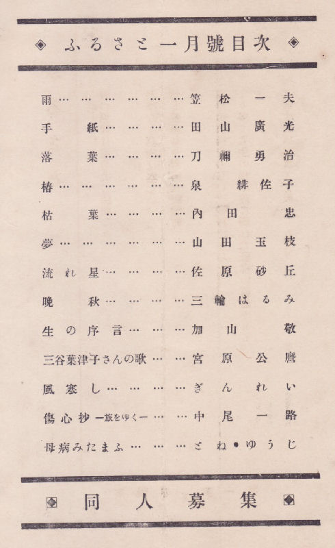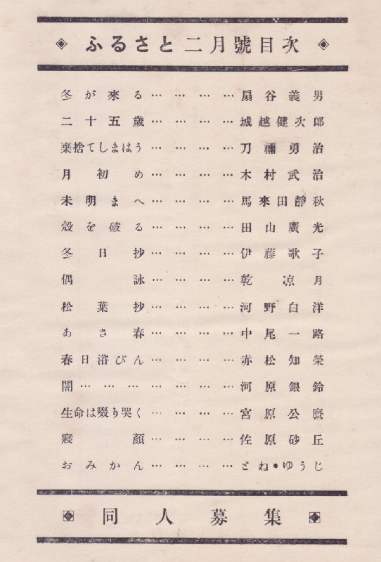 昭和5年2月1日 ふるさと詩社発行(敦賀) 定価10銭 菊判 15頁 編輯兼発行人:刀禰勇治
