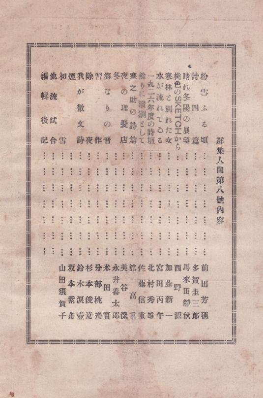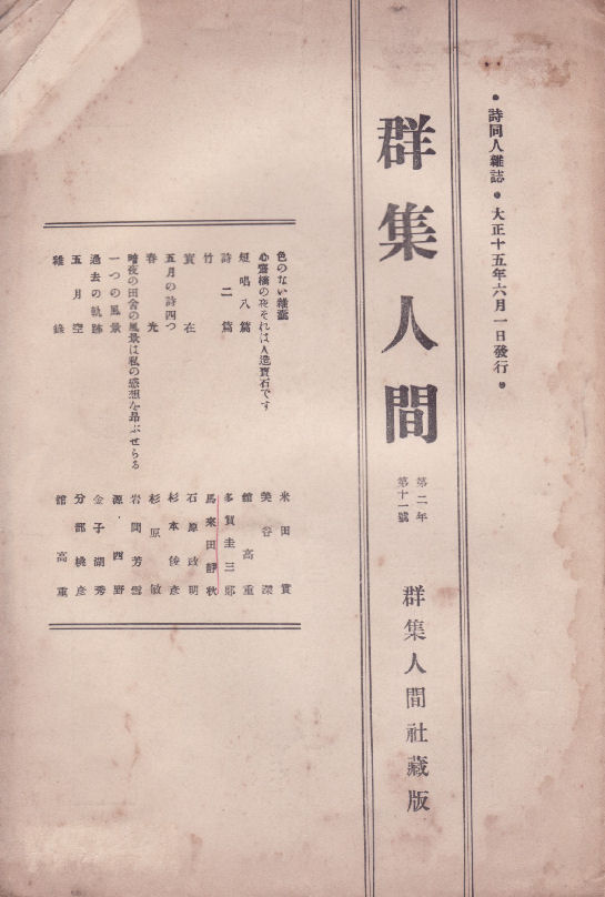 大正15年6月1日 群集人間社発行 定価20銭 菊判 11頁 編輯兼発行人:稲田初太郎