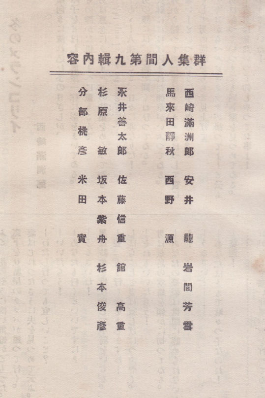 大正15年7月15日 群集人間社発行 定価20銭 菊判 12頁 編輯兼発行人:稲田初太郎