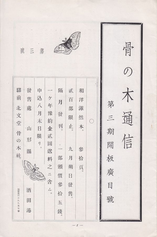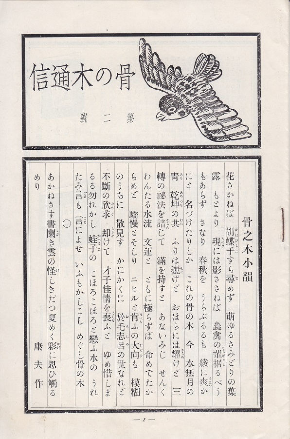 第一號昭和13年5月1日 骨の木社発行 非売品 菊判 8頁 編集人:佐藤十彌