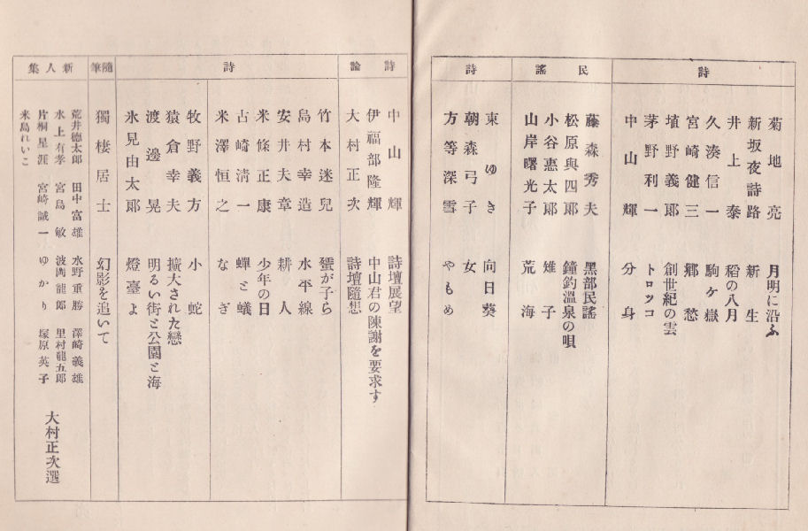 昭和5年1月1日 日本海詩人聯盟発行 定価20銭 菊判 34頁 発行人:大村正次