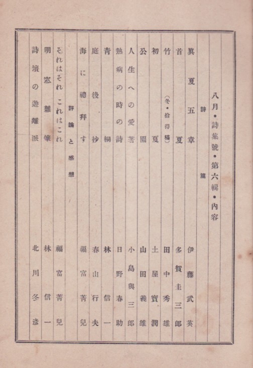 第六輯大正15年8月1日 至言社発行 定価10銭 菊判 24頁 編輯者:福富菁兒 発行者:林信一
