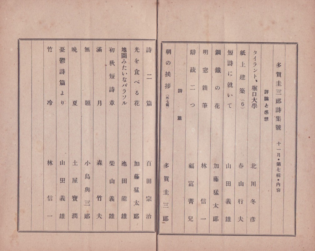 第七輯大正15年11月3日 至言社発行 定価10銭 菊判 28頁 編輯者:福富菁兒 発行者:林信一