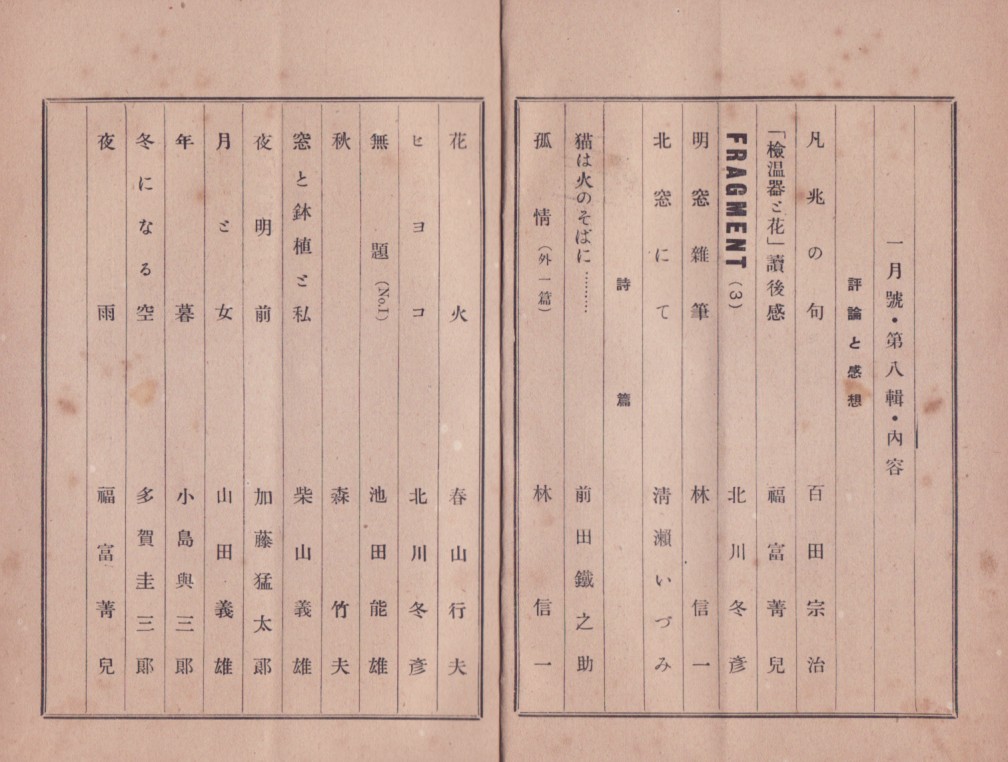 創刊號大正15年3月1日 至言社発行 定価30銭 菊判 28頁 編輯者:福富菁兒 発行者:林信一
