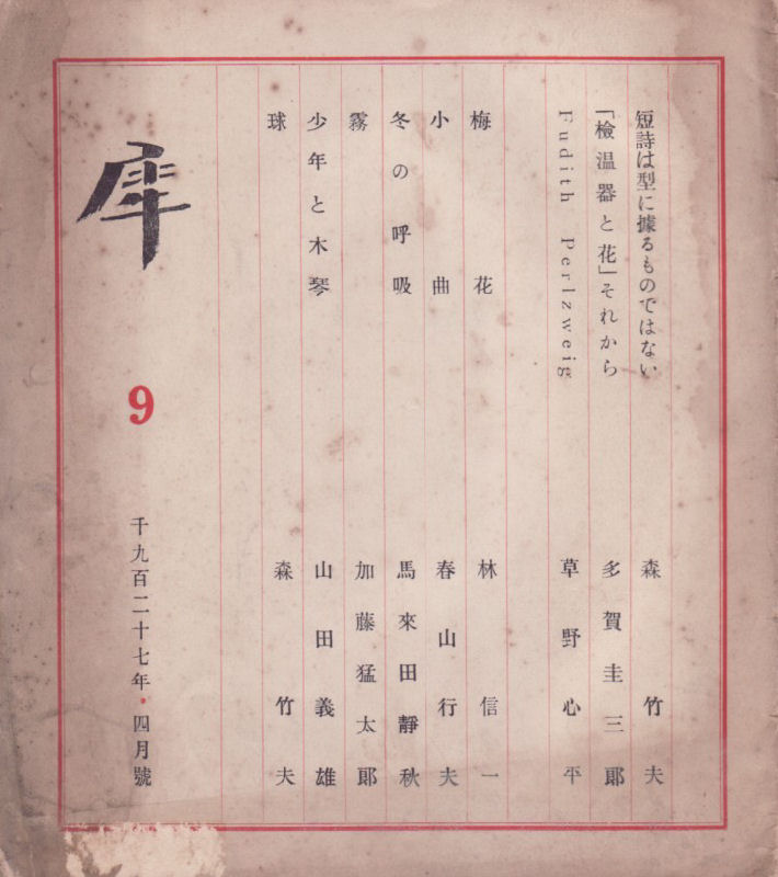 第九輯昭和2年4月1日 至言社発行 定価10銭 菊変型判 12頁 編輯者:福富菁兒 発行者:林信一