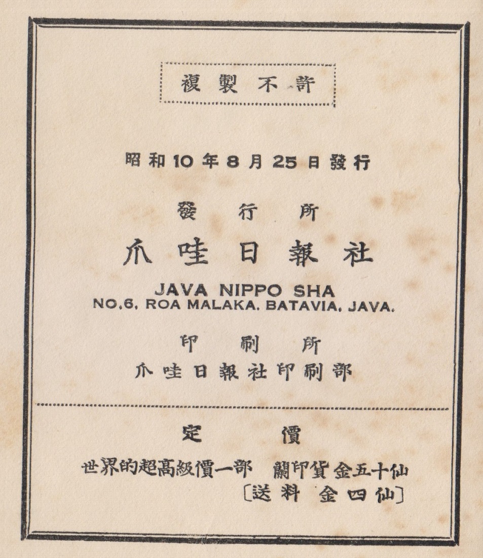 松原暁香 昭和10年8月25日 爪哇日報社発行 定価 蘭印貨(ギルダー)五十仙 四六判変形 92頁 角背並装