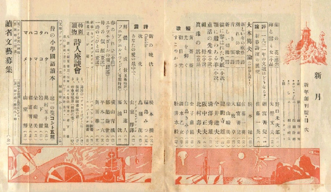 昭和6年1月1日 新月社発行 定価20銭 菊判 84頁 編集者:岩下徹 表紙:蕗谷虹兒 カット、さし絵:佐藤俊雄、羽田晴夫 扉:ビアズレー