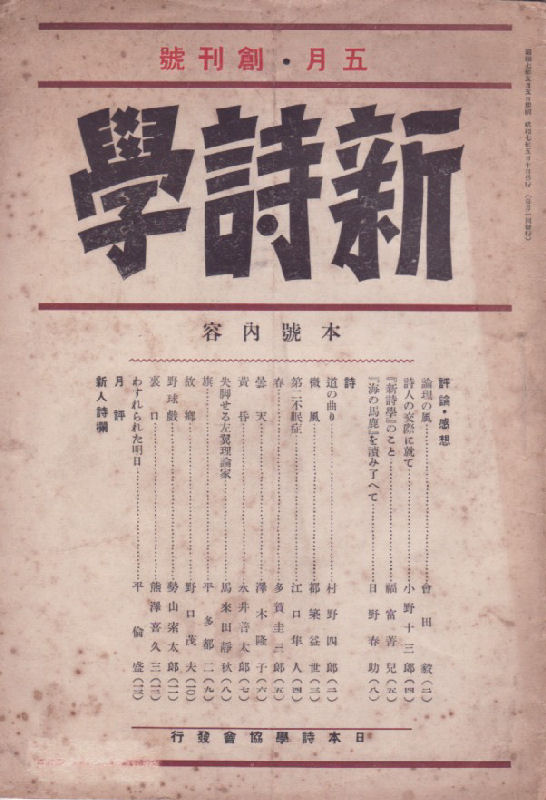 昭和7年5月10日 日本詩學協會発行 定価10銭 菊判 16頁 編輯兼発行人:福富菁兒