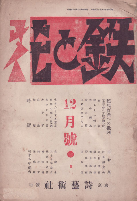 昭和4年12月15日 詩藝術社発行 定価10銭 菊判 14頁 編輯兼発行人:三十七年竜吉