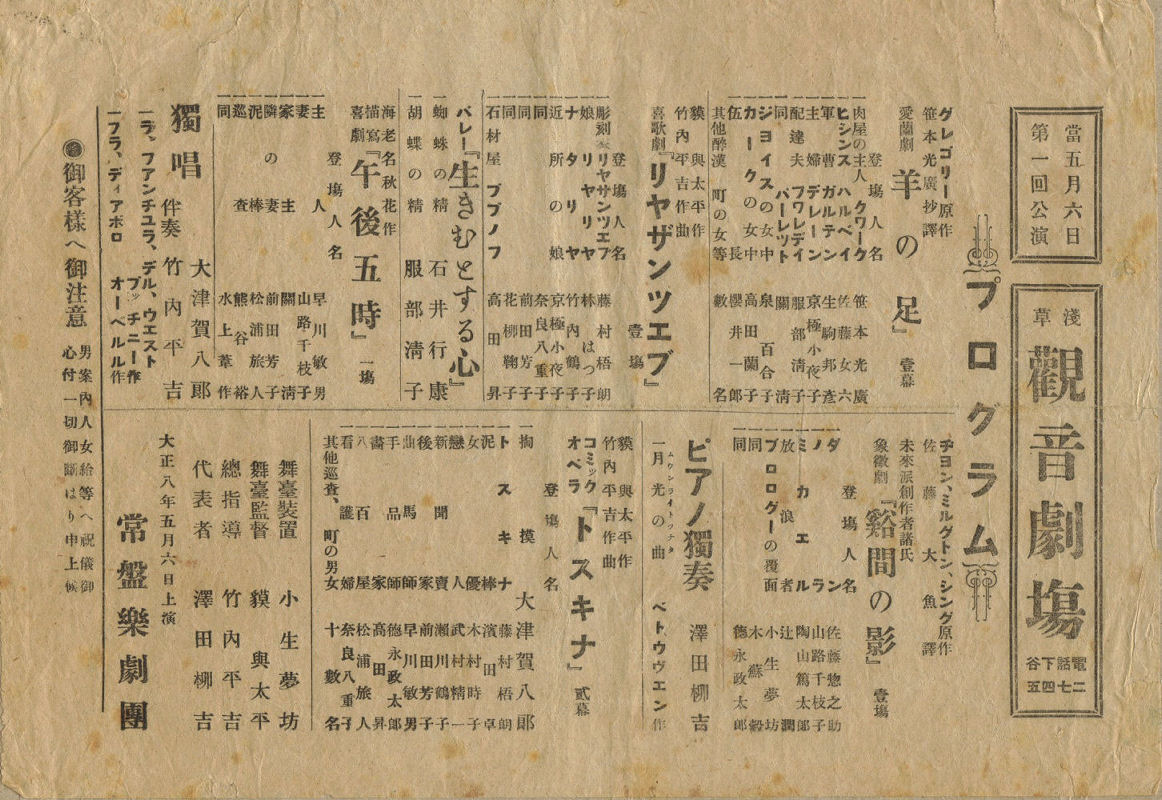 第一回公演大正8年5月6日上演 常盤樂劇團