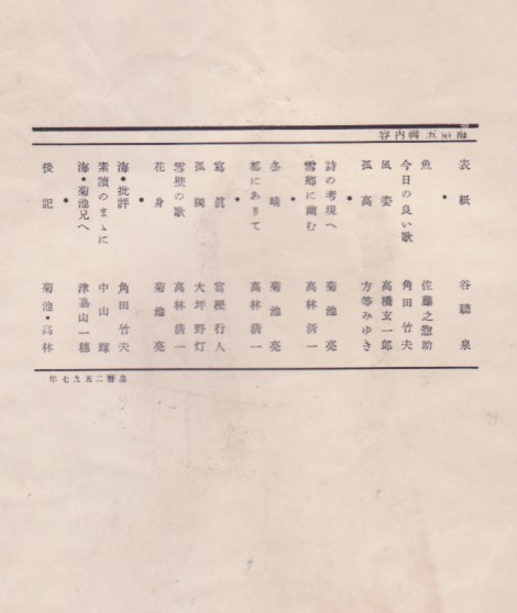 昭和12年1月1日 聖詩風社発行 定価20銭 菊判 27頁 編輯兼発行人:高林清一 装幀:谷聽泉