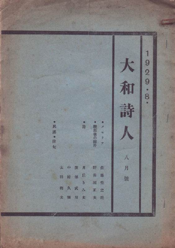 昭和4年8月25日 大和詩人協會発行 定価10銭 菊判 8頁 編輯兼発行人:太田利夫