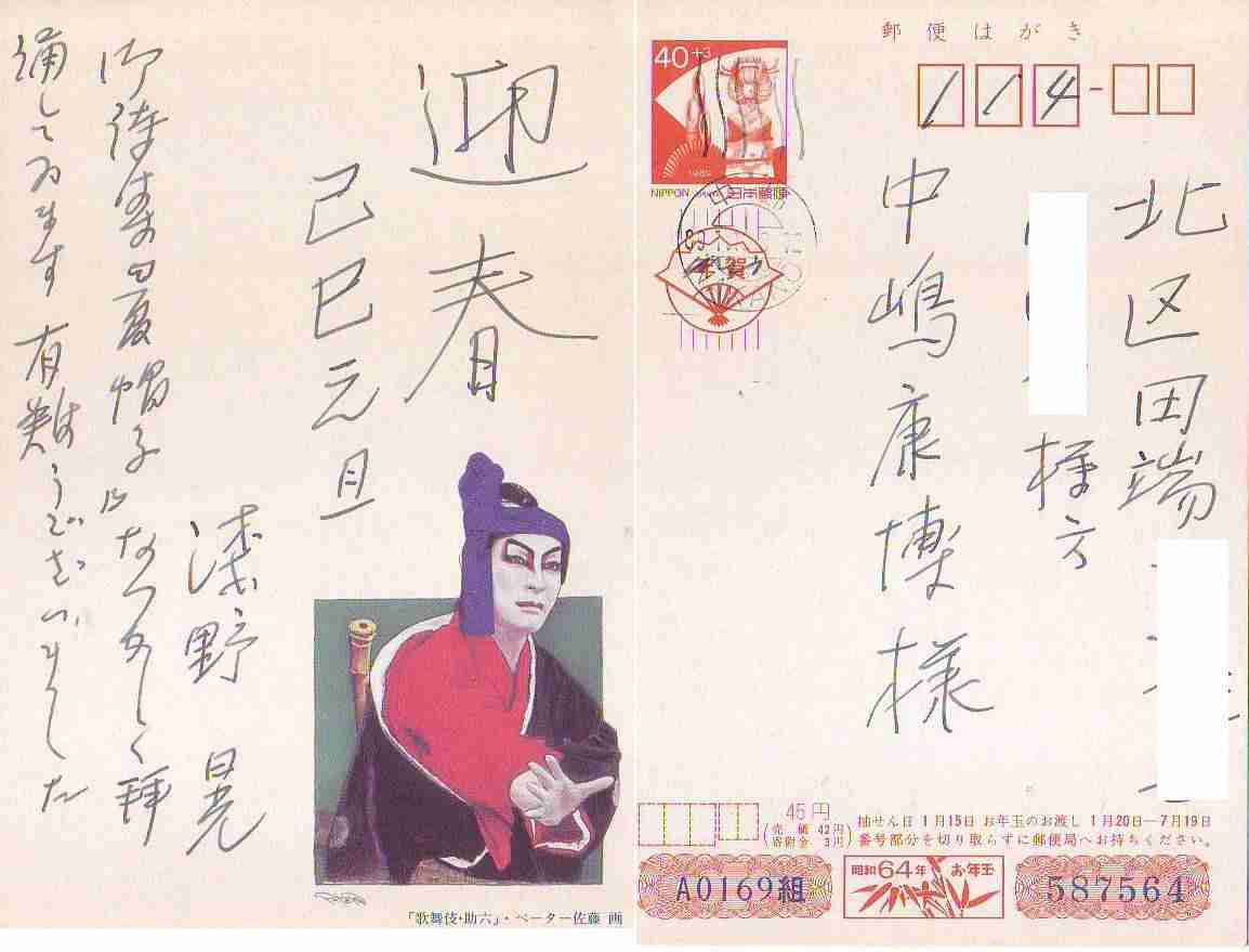 とんでもない手紙を差し上げた独り暮らしの26歳在京青年は、やはりかなり時代について行けてない感じです。その御返事が最初のはがきです。手許の『随聞 日本浪曼派』にも余白に、「檜山氏の「……。」は無理解の表れだが、淺野先生の「……。」は痛ましい。檜山氏の評言で淺野先生の意見が展開しなかったこと が惜しまれる。」なんて生意気なことが書いてある。当時、淺野先生の詩を始めとして、伊福部隆彦、蔵原伸二郎といった人達の戦後の詩業を「抒情詩の地下水 脈」として愛読してゐましたから、インタビューに対する慊い思ひを直接伝へる為に、雑誌の寄贈に託けてお手紙を差し上げたのでありませう。 さらに面会を求めさへすれば、きっと快く迎えて下さり、面白がられるかどうかは分かりませんが、少なくとも珍しがられはしたんでせうに、 芳賀檀、小山正孝、大木実といった諸先生方と同様、師事する田中先生に気兼ねして、終に門を敲くことを得ませんでした。今にして惜しまれる一事です。 また詩集をお送りした返事に「なつかしく拝承」と記されてゐる理由でもありませう。 (2011.5.27)
