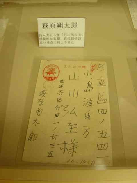 左:遺品の数々 右:礼状の数々(萩原朔太郎最晩年のもの他)