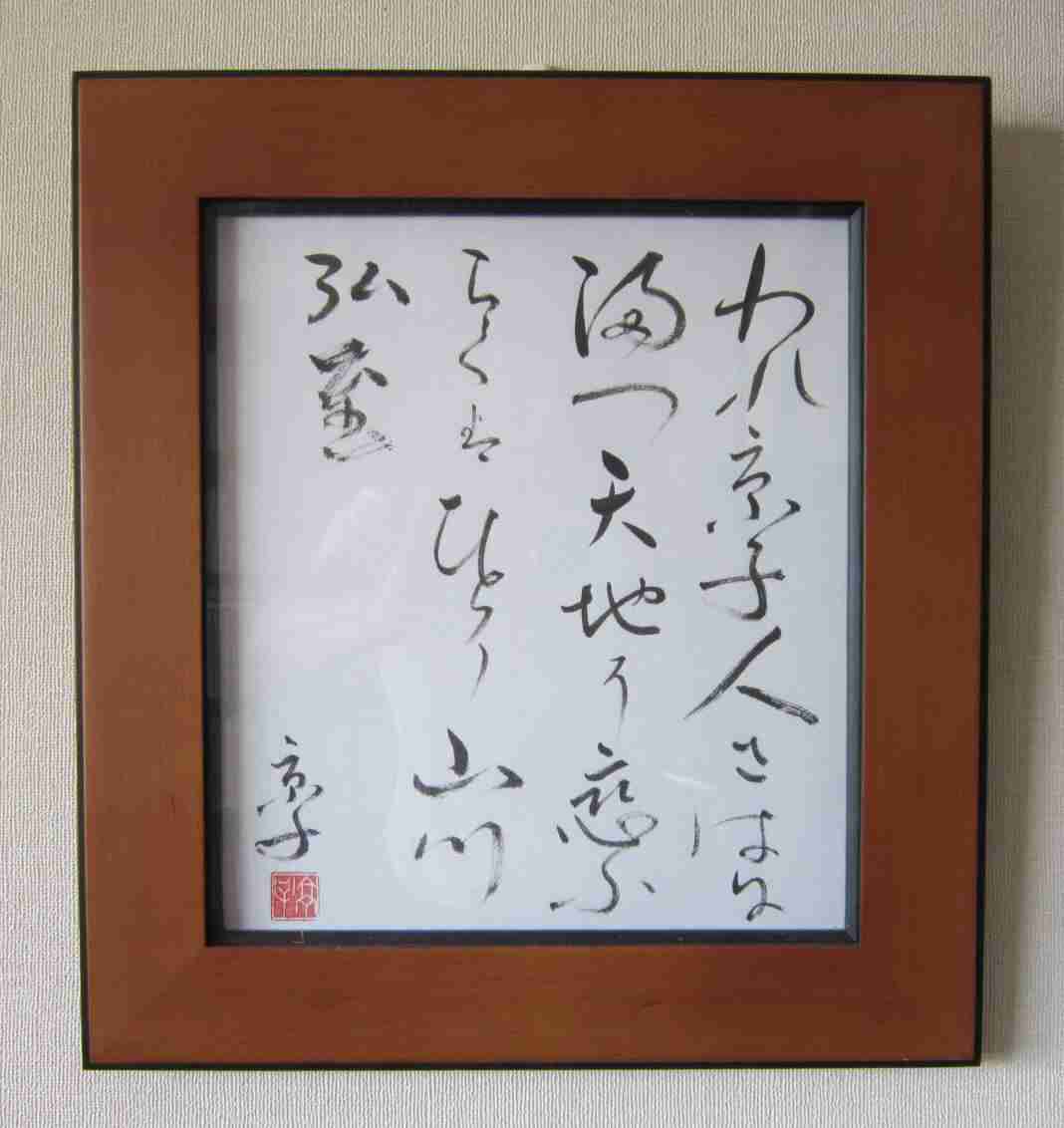 色紙:「生き生きてさびしさあまる世のうへぞ さき立つひとをかぞへ居にけり 比呂志」