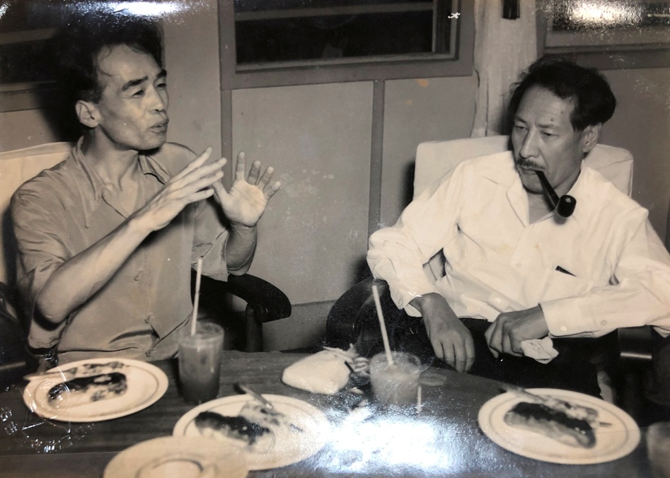 1960(昭和35年) 自宅にて。郡上八幡の詩人、水野隆と。