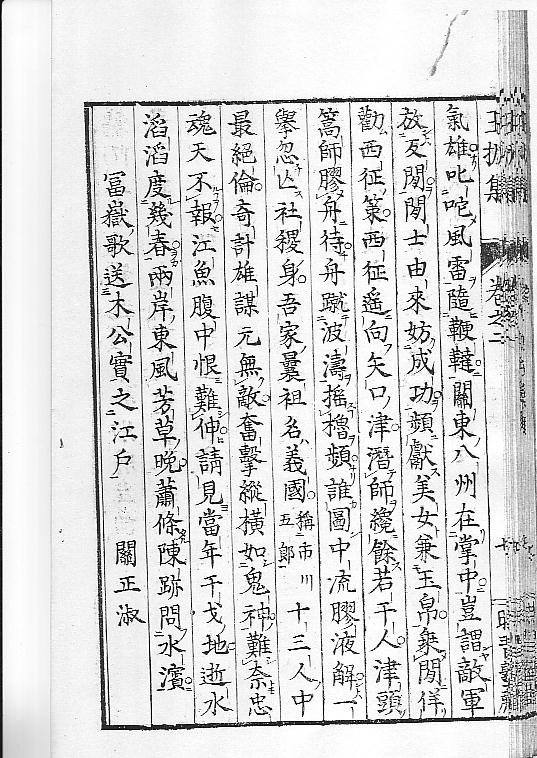 頼山陽文化圏による美濃詩壇の再編成が行はれる前、『濃北風雅』と同時期の美濃地方の 詩人達についてその動静を知る上の貴重な資料である。