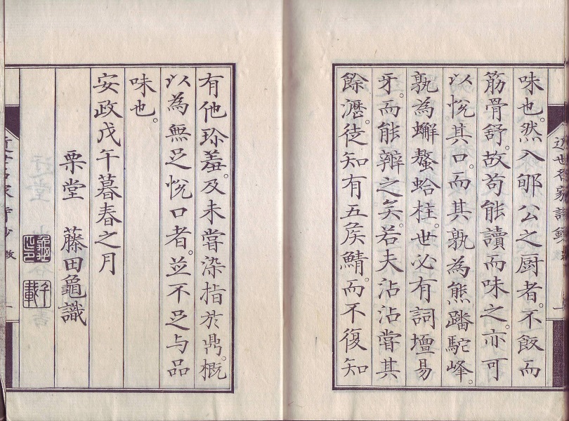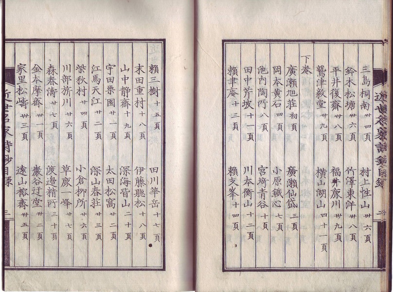 刊行年は文久二年(1862)。安政五年(1858)初版の4年後、万延二年(1861)後版の翌年です。中身はまだ後版を踏襲して、梁川星巌が塩田随齋に書き換へられたままですが、