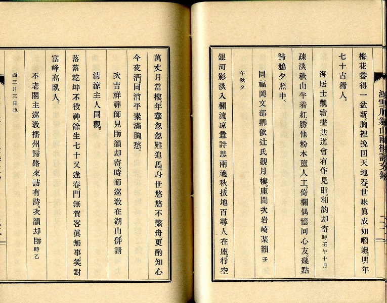 今日古書店で散見する活字漢詩集の多くがこの時期に刷られてゐる。和紙の産地であるためか、特に岐阜の西濃印刷が、手間のかかるこの和綴じ体裁の自費出版ものを一手に引き受けてゐた感がある。