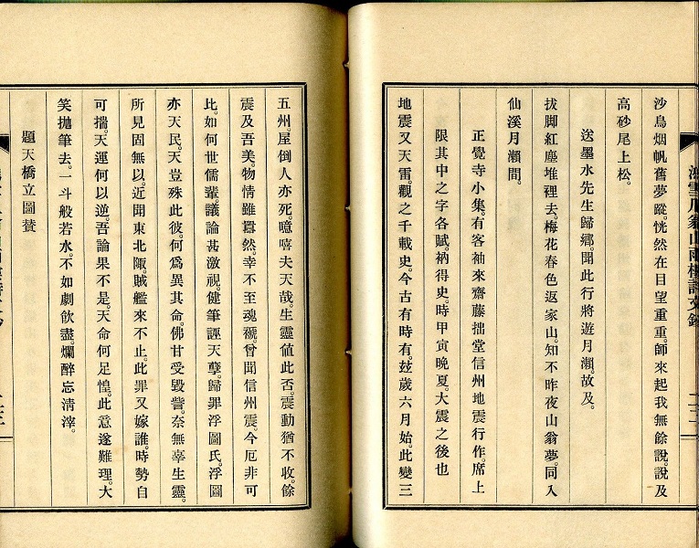 正覚寺小集。有客袖来斎藤拙堂故信州地震行作。席上限其中之字各賦。衲得史。時甲寅(安政元年)晩夏。大地震之後也 ほか
