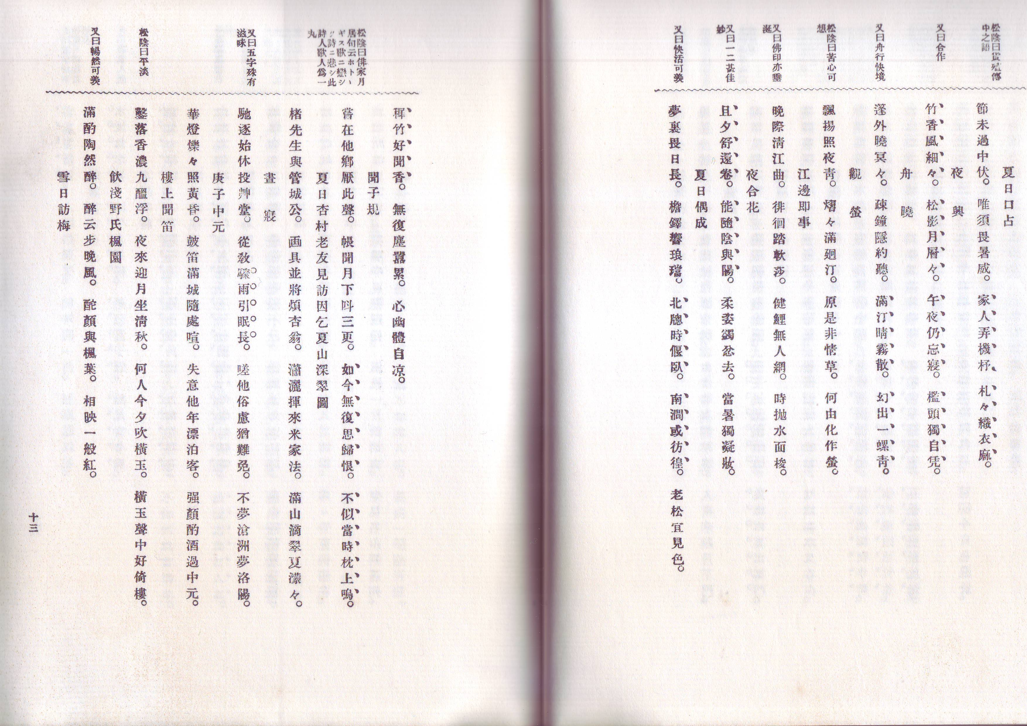 夏日口占 / 夜興 / 舟暁 / 観蛍 / 江辺即事 / 夜合花 / 夏日偶成 / 聞子規 / 夏日杏村老友見訪因乞夏山深翠図 / 昼寝 / 庚子中元 / 楼上聞笛 / 飲浅野氏楓園 / 雪日訪梅