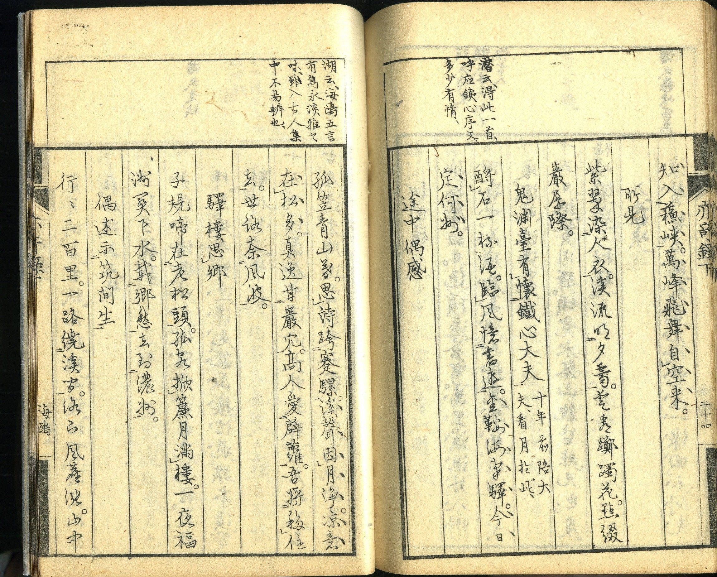 頭註に小野湖山、小橋橘陰、大沼枕山、(以上上巻) / 土井聱牙、鷲津毅堂、鴻雪爪、(以上中巻) / 宮原潜叟(節庵)、南摩羽峰、小野湖山