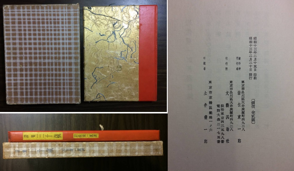 イワサ トウイチロウ【岩佐東一郎】『二十四時』1943/湯川弘文社(大阪)(新詩叢書)/179p/18.5cm上製カバー2000部/\1.50