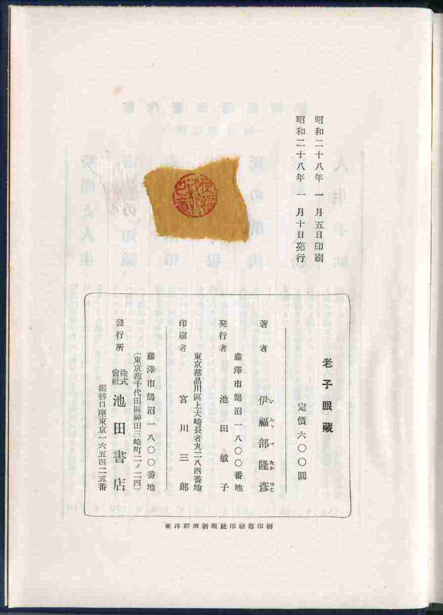 いふくべ たかひこ【伊福部 隆彦】『老子眼蔵』1953