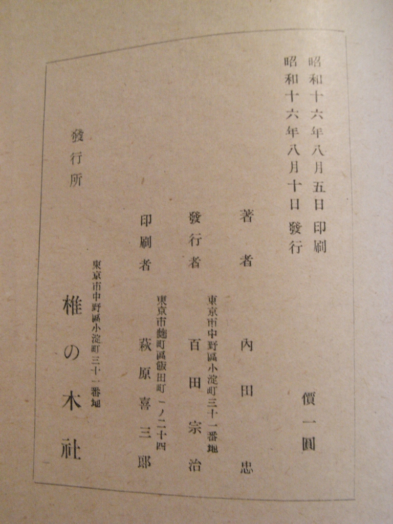 ウチダ タダシ【内田忠】『寸』1941/椎の木社/109p/19cm上製函/\1.00
