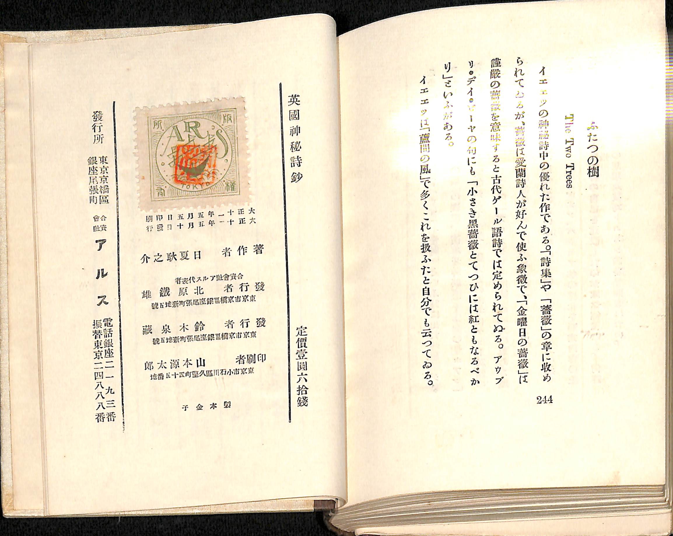 ひなつ こうのすけ【日夏耿之介】『英国神秘詩抄(訳詩)』1922