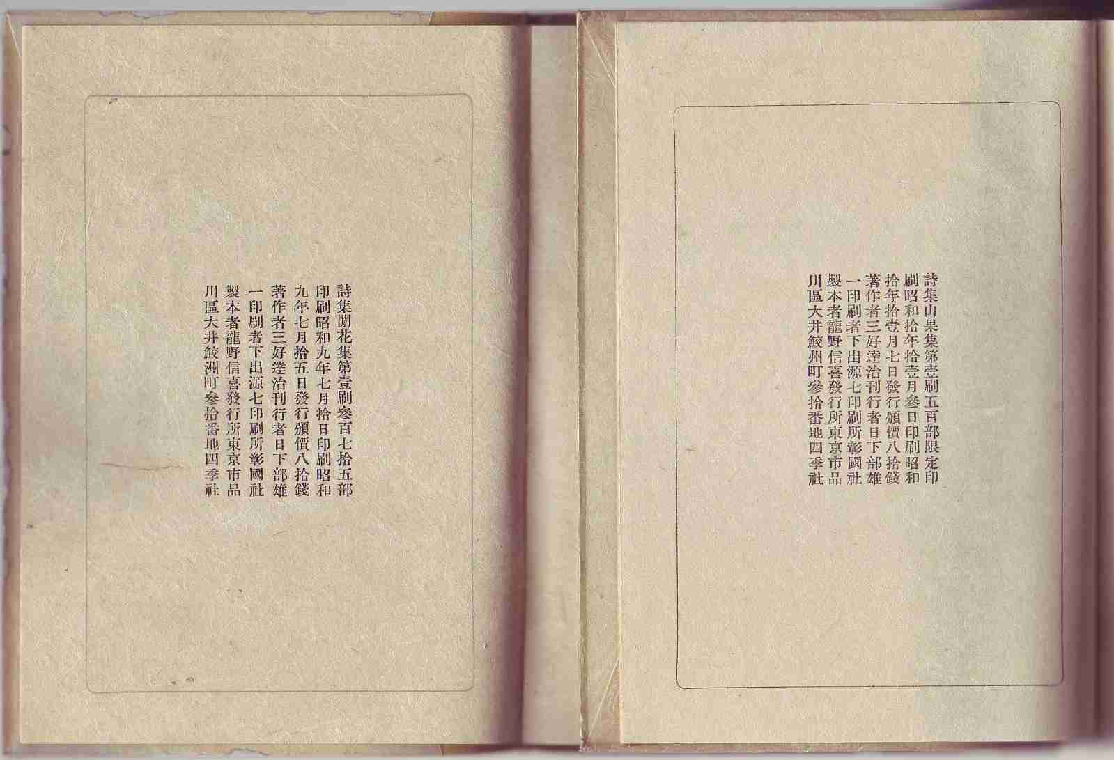 ミヨシ タツジ【三好達治】『間花集』1934/四季社/52p/18.1cm並製375部/\0.80