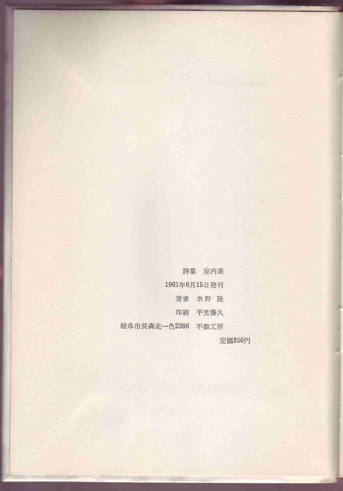 ミズノ リュウ【水野 隆】『室内楽』1961/不動工房(岐阜)/46p/25.6cm並製/\250