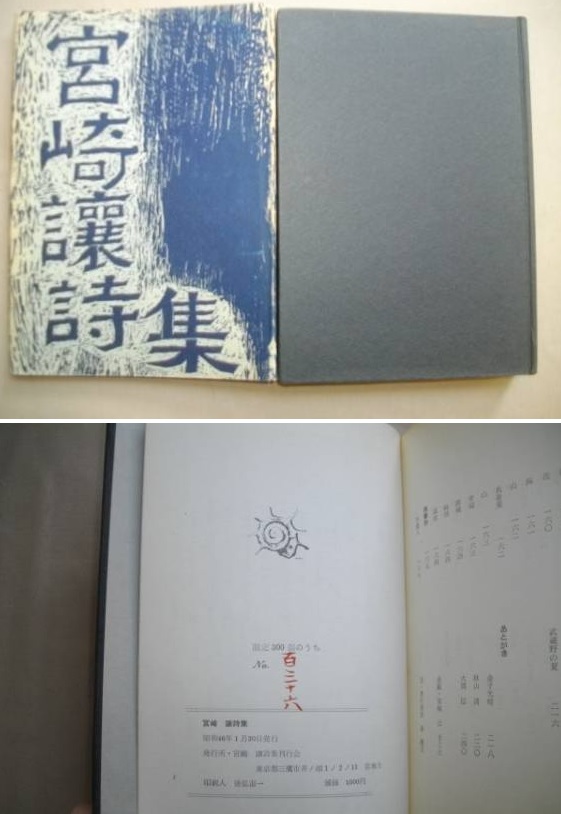 ミヤザキ ユズル【宮崎 譲】『宮崎譲詩集』1971/宮崎譲詩集刊行会/246p/18.9cm上製カバー限定300部/\1000