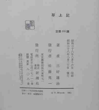 ミヨシ タツジ【三好達治】『草上記(文集)』1963/新潮社//\480