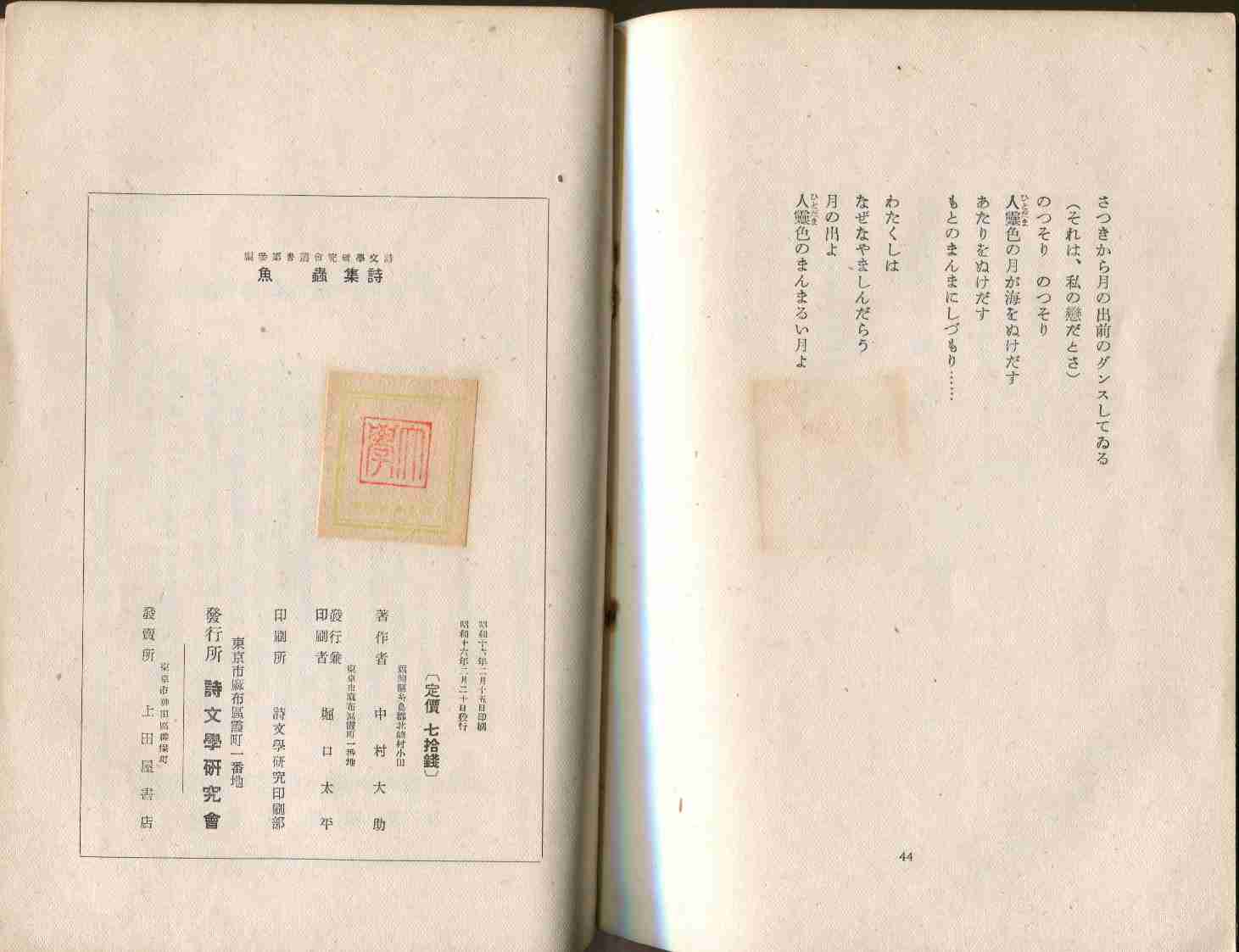 Å× ½½Ñy“Þ—Ç izw•—Œi‚Æ™|—‚̉Ìx1944/Ž•¶›{Œ¤‹†˜ð/44p/18.5cm•À»“£ŽÊü/”ñ”„