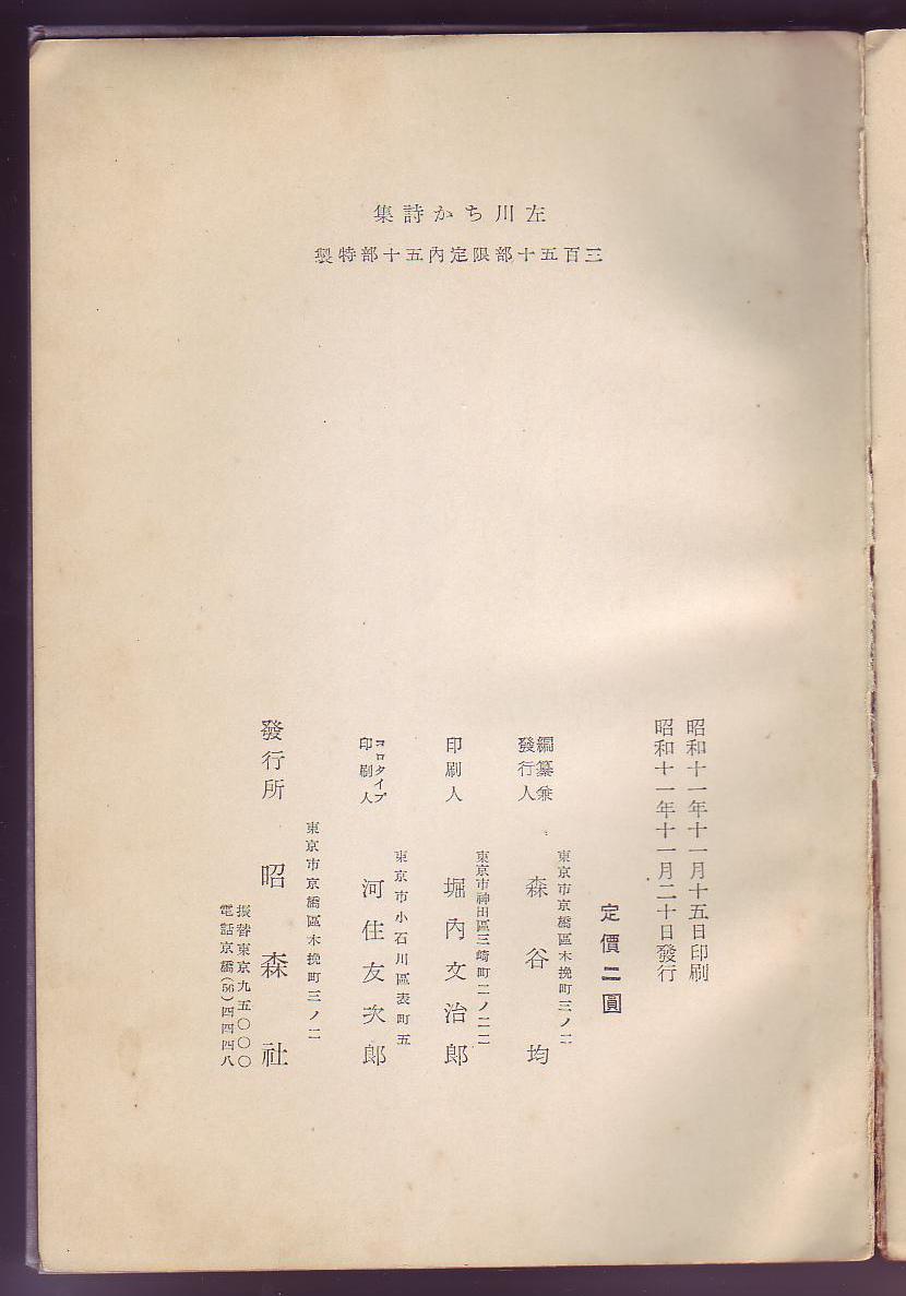 サイト シヨウ【さいと・しよう】『即興詩集』1929/人文書房/119p/20cm