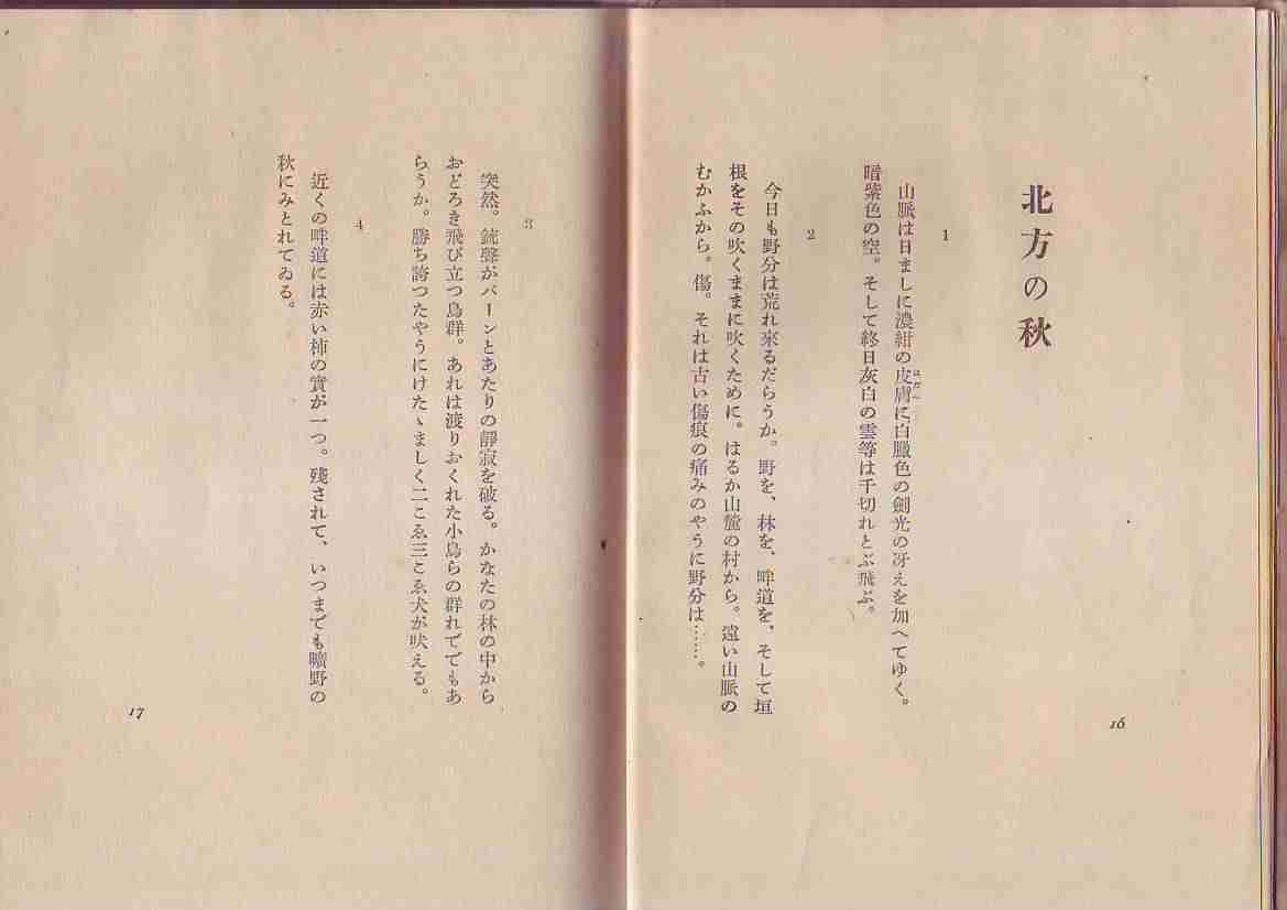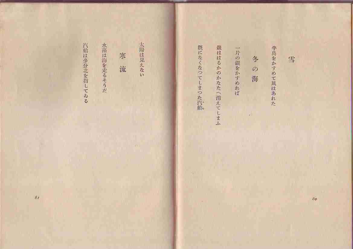 その詩情は、『氷島』時代の萩原朔太郎に序文を仰いだやうに、北方への凛冽たる意志と思慕とを基底にした抒情である。朔太郎は序文で一言したやうに、