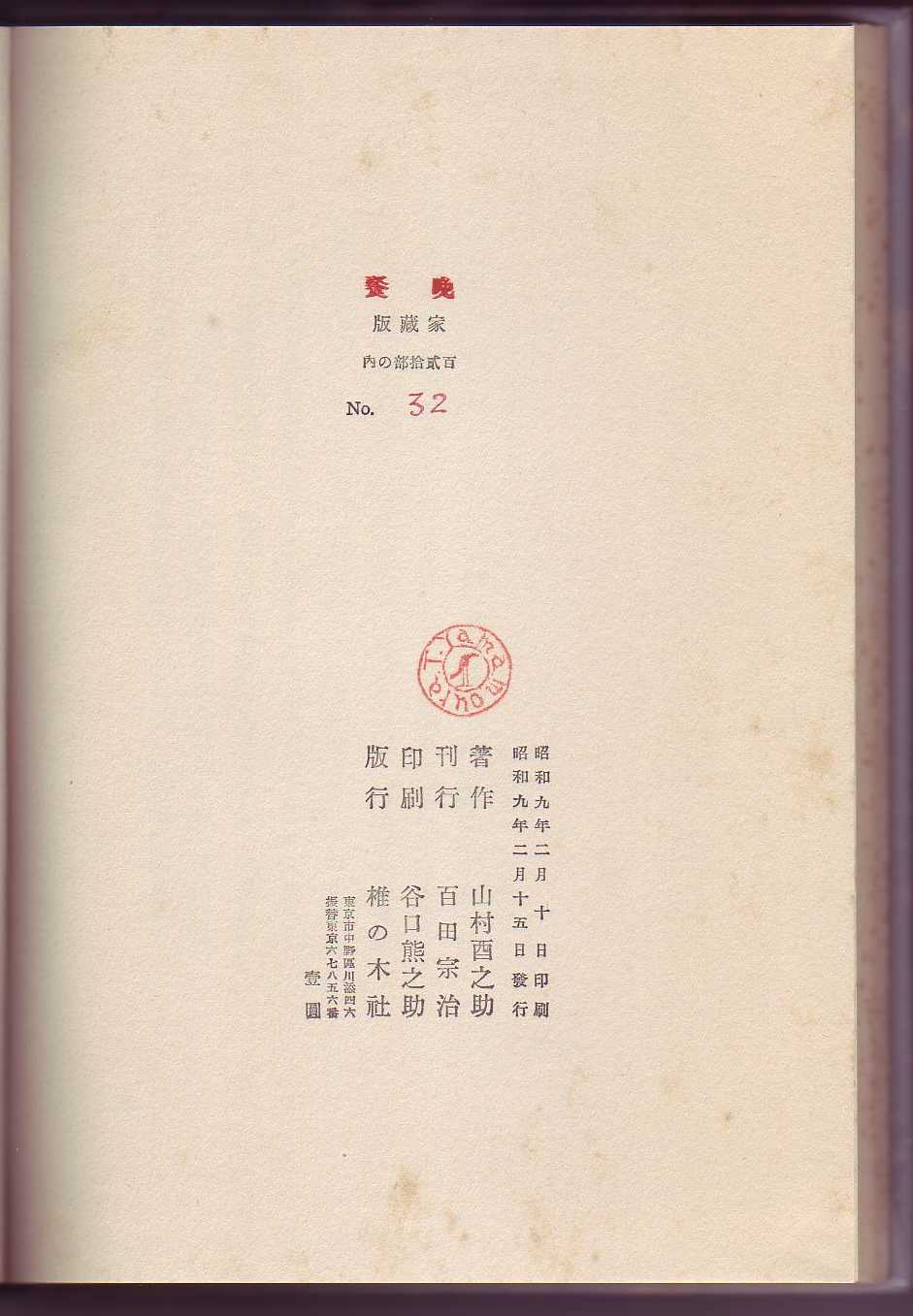 ヤマムラ トリノスケ【山村酉之助】『美しき家族』1935/椎の木社/92p/19cm上製函/\1.80