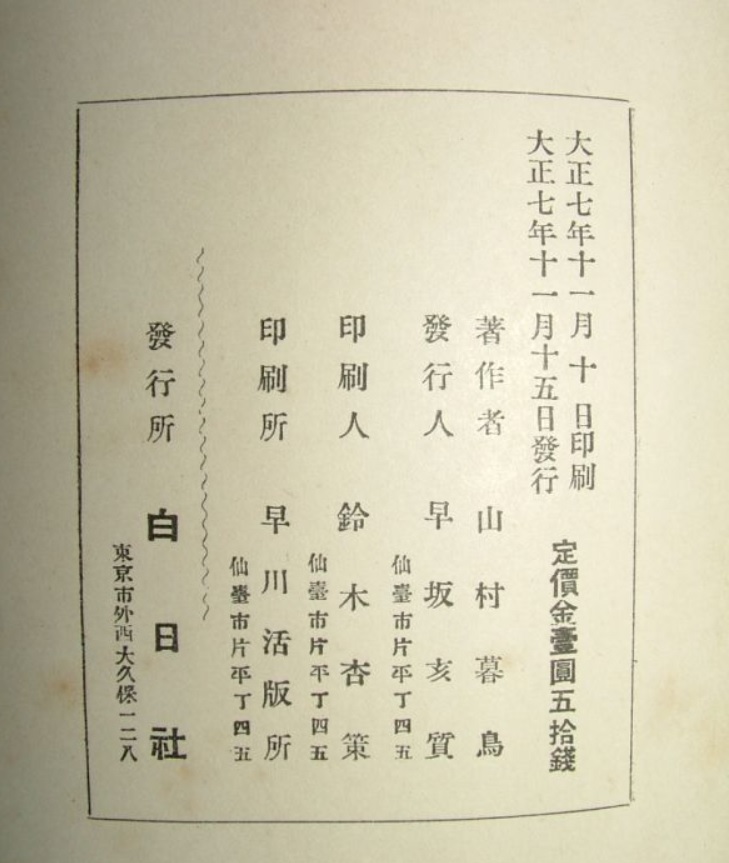ヤマムラ ボチョウ【山村暮鳥】『萬物の世界(童謡集)』1922/眞珠書房/304p/19cm