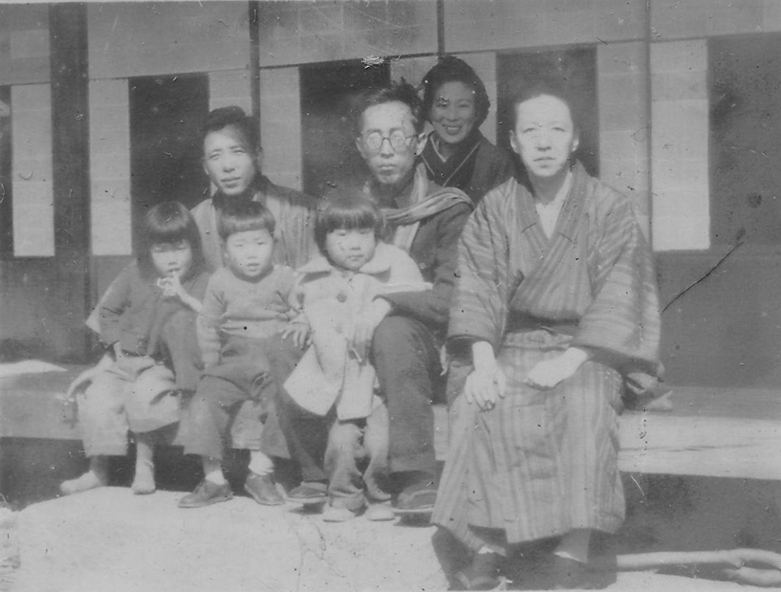 昭和24年12月24日 羽田明邸にて 前列右から羽田明、田中克己37歳、旗田巍(たかし)夫妻。