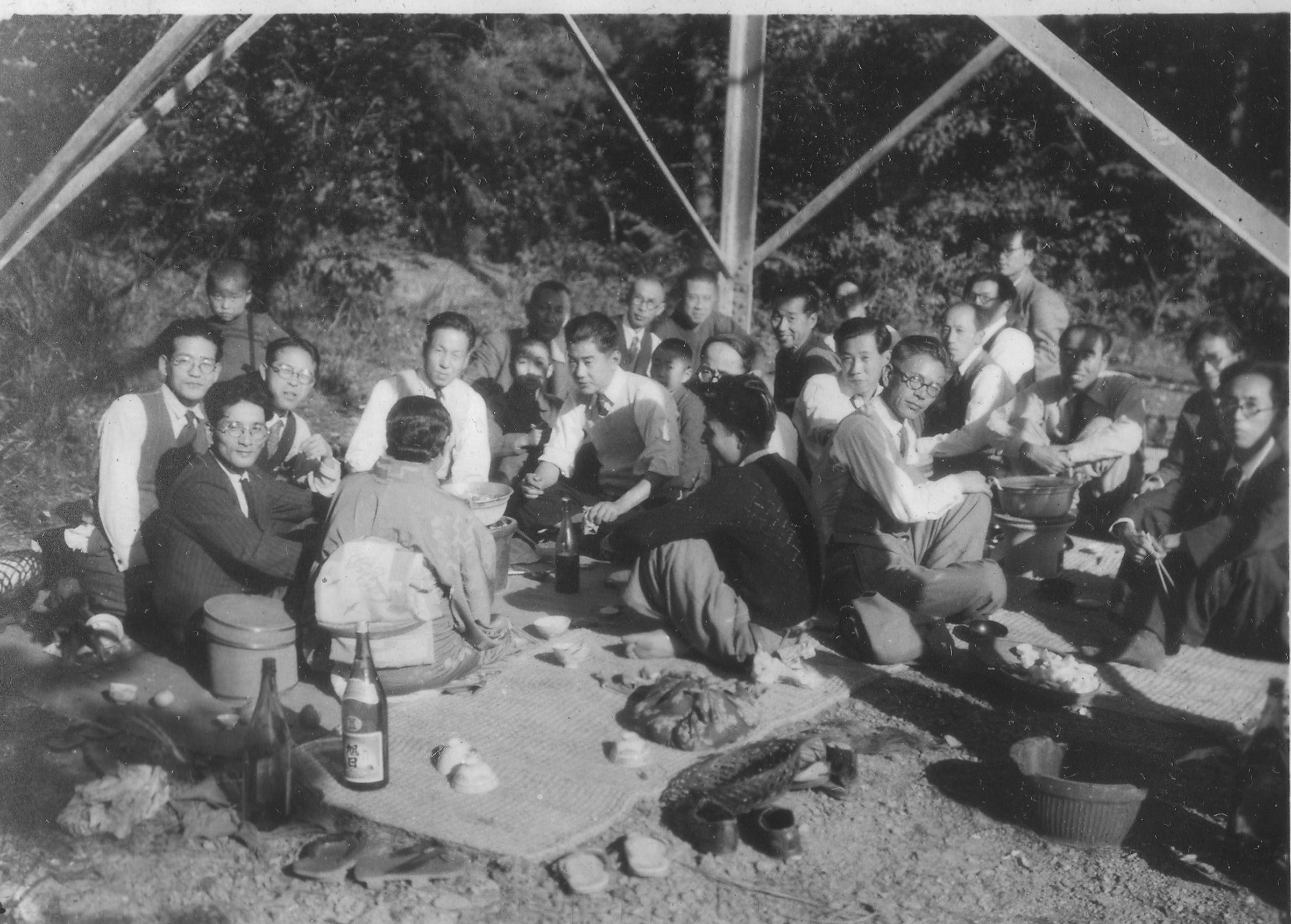 昭和24年10月18日 天理図書館開館記念日(十九周年) 左端田中克己、その前列に羽田明。 38歳。