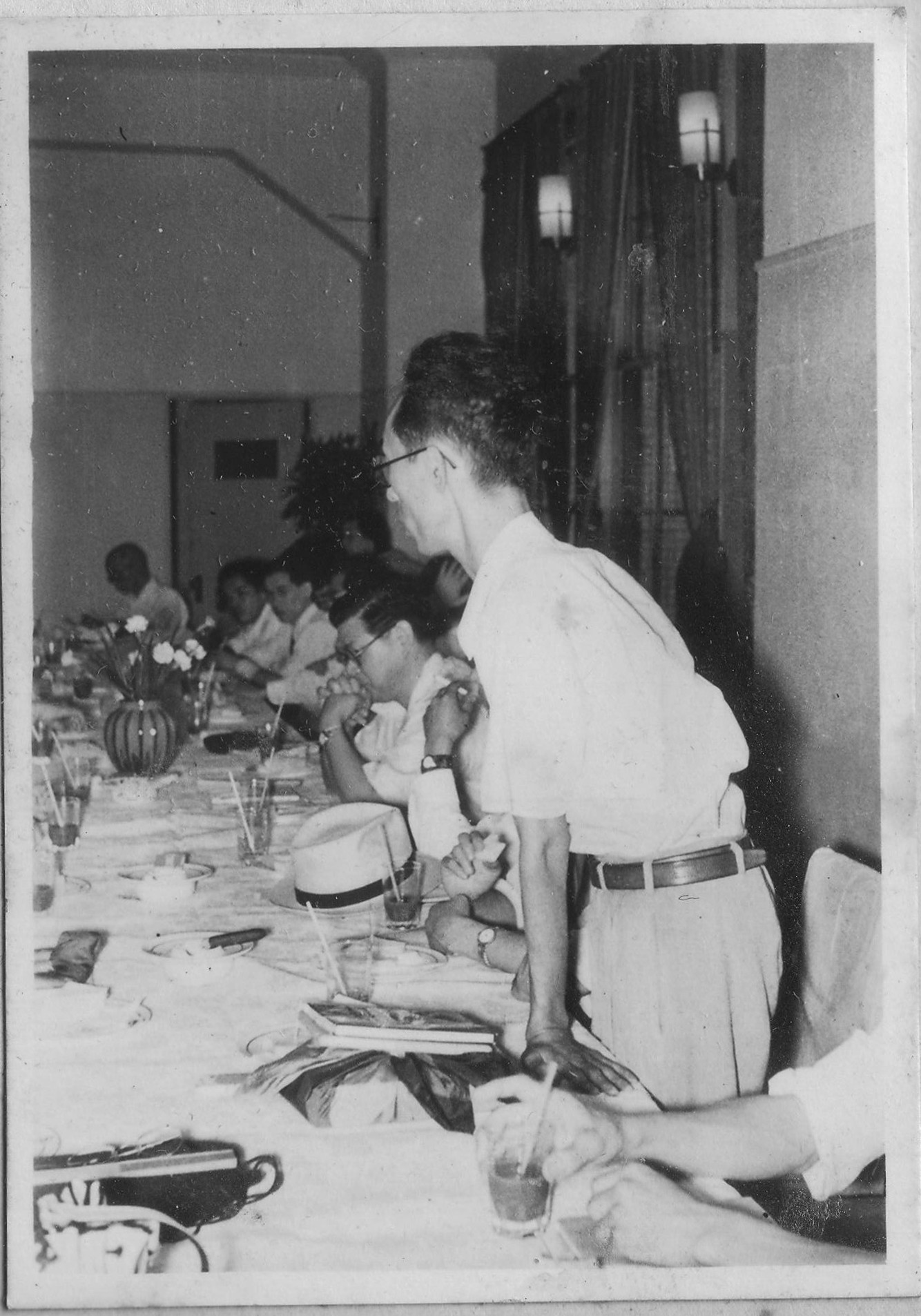 昭和29年5月29日 藤原グループ同窓会 左から2人目 田中克己43歳、長沖一、小野十三郎、西宮一民。
