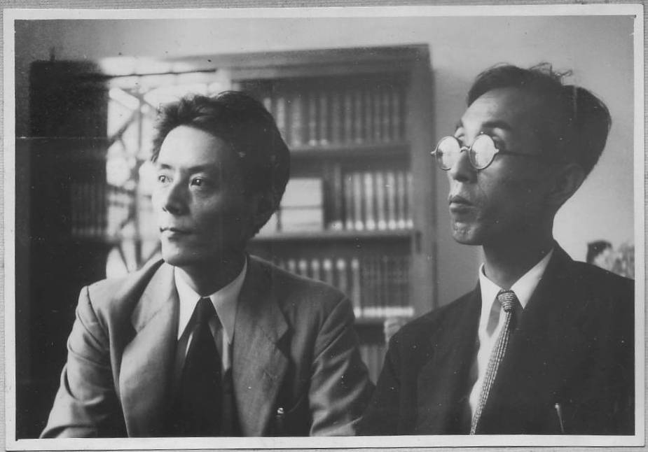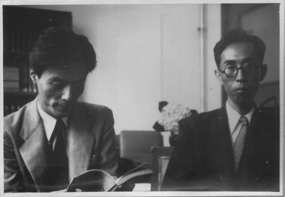 昭和29年7月9日 43歳 帝塚山学院研究室にて 芥川比呂志氏と (辻芙美子氏撮影)