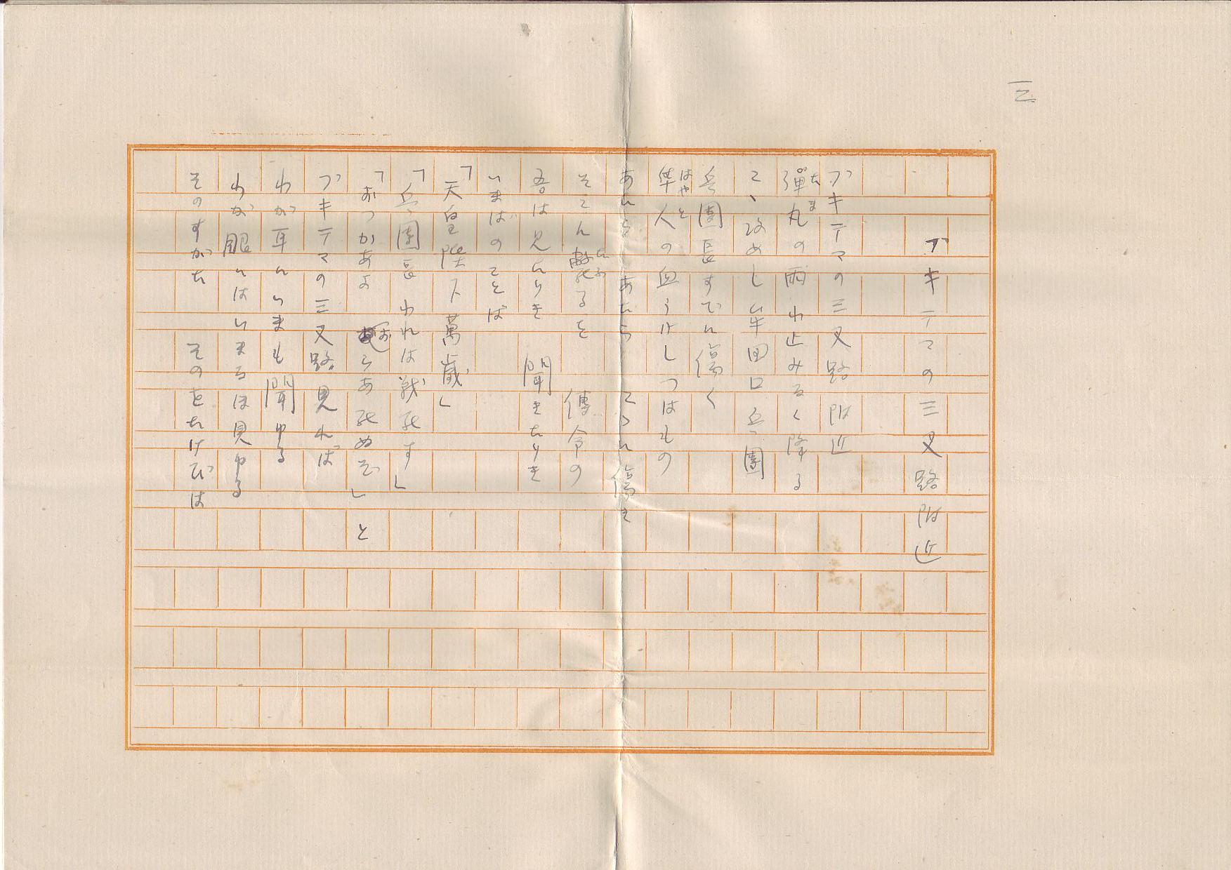 ガヨ族の住地タキグンといふところで、夕方青年たちが四重奏団(クワルテット)で聞かしてくれた。従軍中ただ一つだけ知り得た歌である。最後の三行以外は大体忠実に訳した。 左に原語を掲げてをく。
