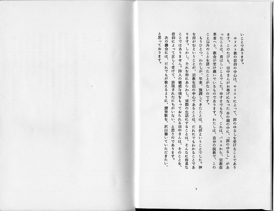 それを形にあらわし、実際の生活にすることは、そんなに容易なことではありません。詩人の敏感な魂をもっておられる田中さんは、そのことを、信仰によって正しく受けて、