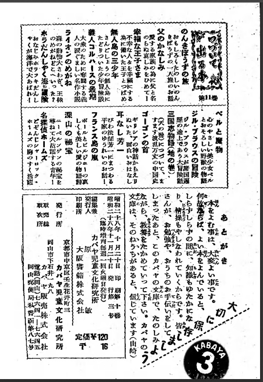 もちろん著書に数へられてゐませんし、私も本人から聞いたことがありません。そもそもこの「おまけ本」のシリーズ、9巻以降の号が順番に発行されてをらず、書誌の全容も今だにはっきりしてゐないのですが、岡長平氏編著の研究書『カバヤ児童文庫の世界(岡山文庫2014)』によると、