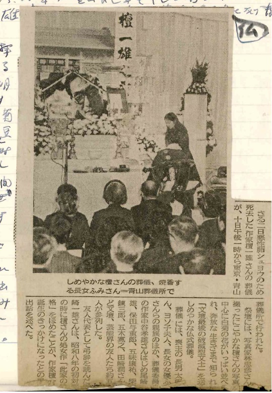 檀一雄、癌にて死に中谷孝雄葬儀委員長となり、青山斎場に保田も出しと也。